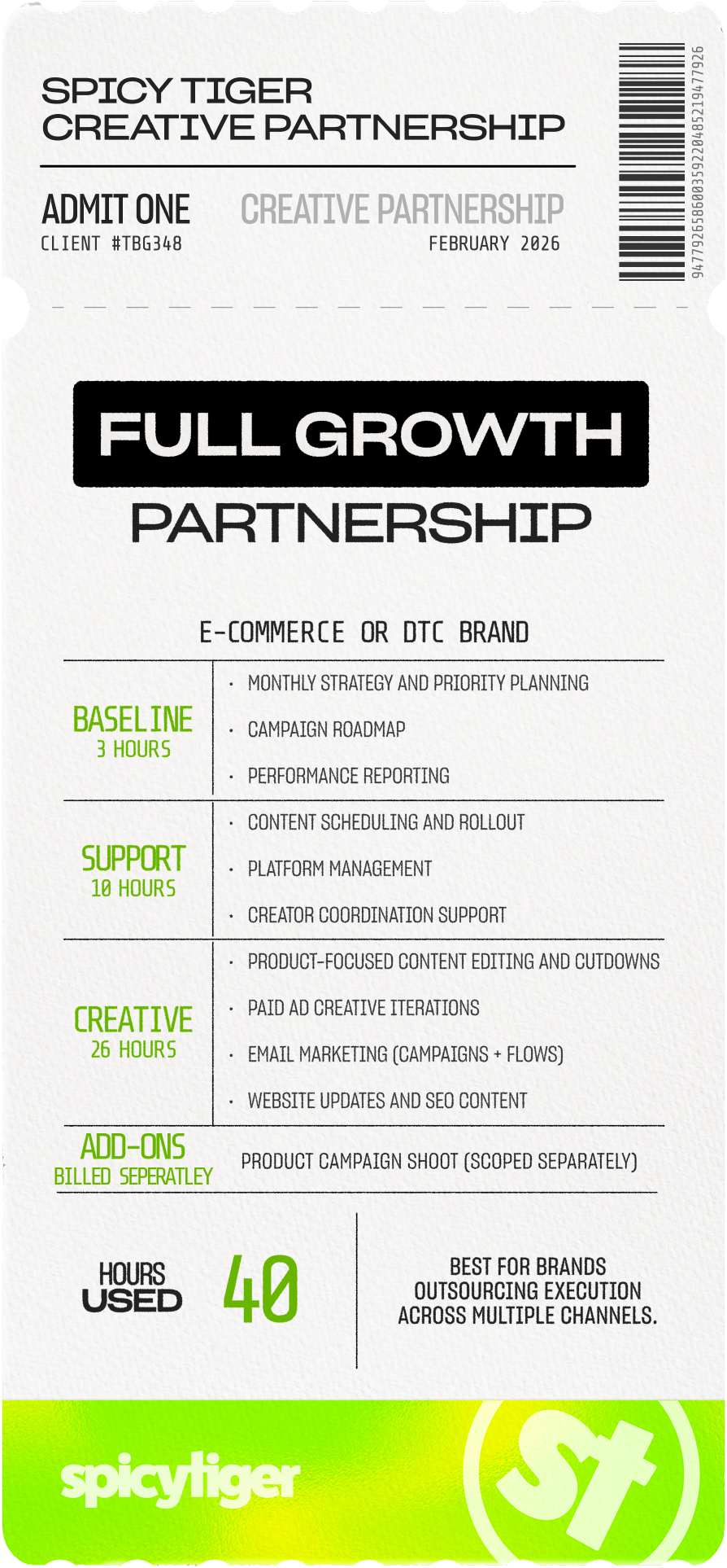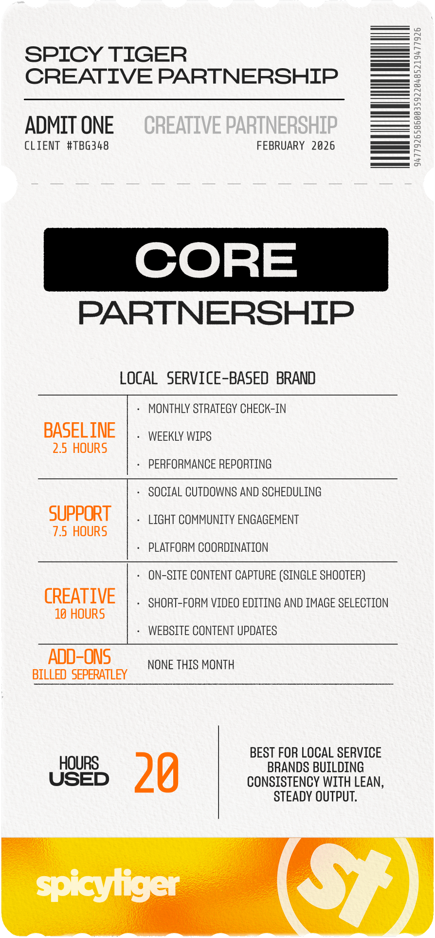 To maintain quality and momentum, each Spicy Tiger office partners with a limited number of brands at any one time. This allows us to stay embedded, responsive, and genuinely invested in the work.